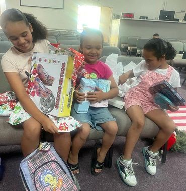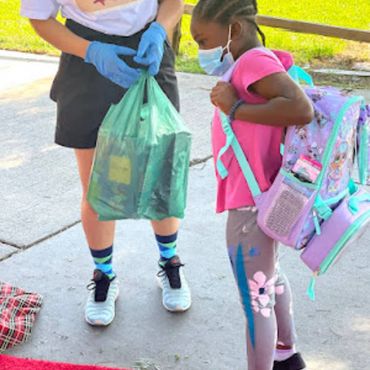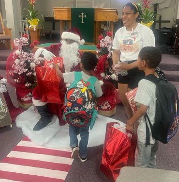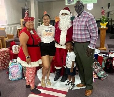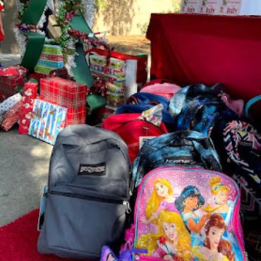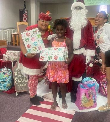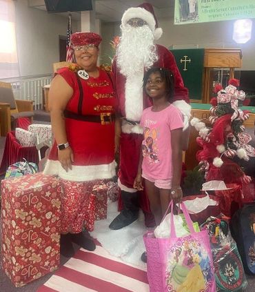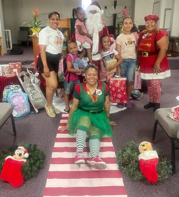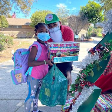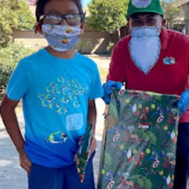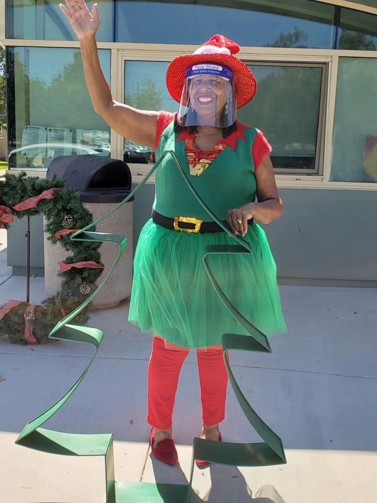 Our Merry Elf warmly greeting all of the student recipients with a big smile!!!