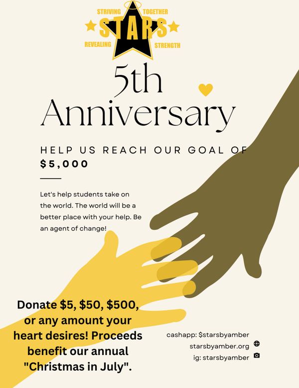 Help us as we raise funds for our annual "Christmas in July" giveaway event by purchasing our "Lady Pink" box that includes make up supplies, make up bag (of your choice), necklace, earrings & bracelet ( of your choice & thanks to Paparazzi), & a decorated champagne flute (of your choice & special thanks to STaRS' committee member who did an awesome job her first go round) ! This purchase comes with a free, decorated shot glass :) Please complete & submit the link to make your choice of the options listed above: https://forms.gle/RpD8SK269jzEUtnf8
